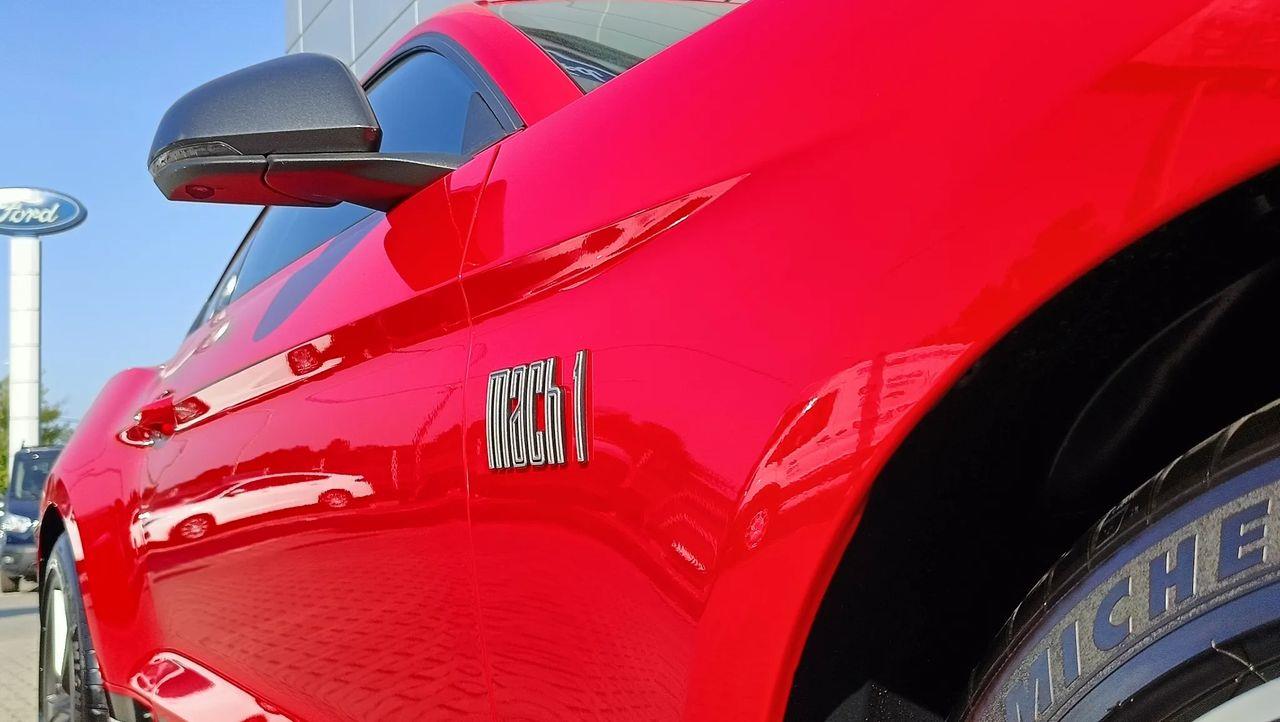 W lipcu 2020 zadebiutowała pierwsza od 2004 roku sportowa odmiana Mustanga z serii Mach 1, pierwszy raz opracowana także z myślą o sprzedaży na rynku europejskim. Pod kątem wizualnym samochód zyskał dedykowany pakiet stylistyczny łączący czarne akcenty, czarne alufelgi i dodatkowe spojlery z większymi wlotami powietrza, poczwórnymi końcówkami wydechu oraz przeprojektowaną osłoną chłodnicy. Do napędu tego wariantu wykorzystano 5-litrowe V8 rozwijające moc 460 KM, które współpracuje z 6-biegową przekładnią manualną Zmodyfikowano układ dolotu powietrza i kolektor dolotowy, a także zamontowano przepustnice o średnicy 87 mm, które zwiększyły swobodny przepływ powietrza do silnika i poprawiły osiągi samochodu