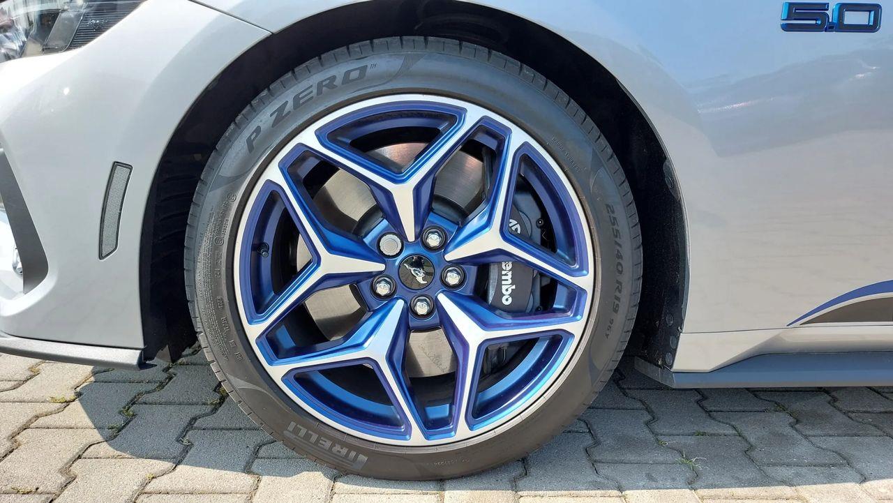 • Obręcze kół ze stopów lekkich - 19" x 9" z przodu, 19" x 9,5" z tyłu, wzór 5x2-ramienny, z wykończeniem maszynowym, z elementami w kolorze niebieskim, ogumienie z przodu: 255/40/19; ogumienie z tyłu: 275/40/19