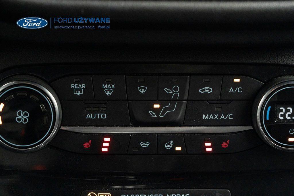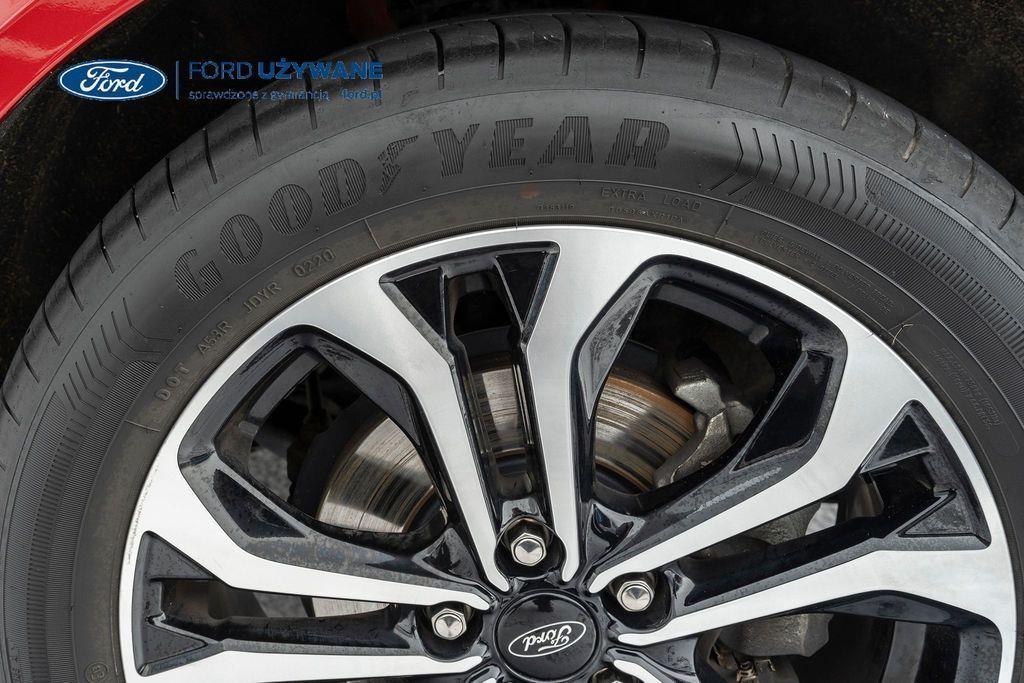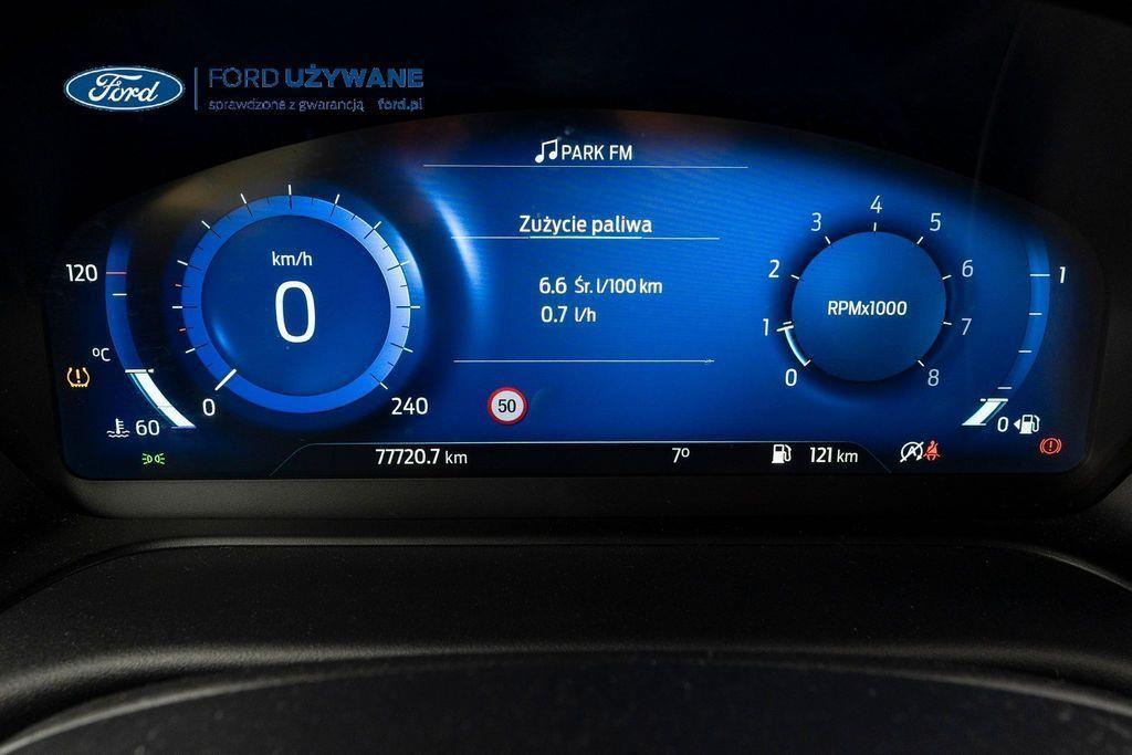 WYPOSAŻENIE: ABS - system zapobiegający blokowaniu kół Czujnik zmierzchu Czujniki parkowania - tył Dach w kolorze nadwozia Dywaniki welurowe przód/tył Dźwignia hamulca ręcznego pokryta skórą Elastyczna osłona bagażnika - otwierana z klapą bagażnika Ford MegaBox - dodatkowa przestrzeń ładunkowa pod podłogą bagażnika Fotel kierowcy z regulacją manualną Fotel kierowcy z regulacją odcinka lędźwiowego Kierownica i dźwignia zmiany biegów pokryte skórą Klimatyzacja manualna Konsola centralna z podłokietnikiem i schowkiem Kurtyny powietrzne w I i II rzędzie Lakier Blazer Blue Listwa wzdłuż dolnej linii szyb bocznych ľ w kolorze czarnym Lusterka zewnętrzne podgrzewane i regulowane elektrycznie Lusterka zewnętrzne składane elektrycznie Lusterka zewnętrzne w kolorze nadwozia Lusterka zewnętrzne z kierunkowskazami Lusterka zewnętrzne z podświelteniem podłoża Mocowanie fotelika dziecięcego ISOFIX na tylnych siedzeniach skrajnych 2szt Oparcie siedzeń tylnych składane w stosunku 60/40 Pakiet Ambient Lighting - nastrojowe oświetlenie wnętrza diodami LED Podsufitka materiałowa jasna Poduszka powietrzna kierowcy Poduszka powietrzna pasażera Poduszki powietrzne boczne przednie Reflektory projekcyjne LED ze światłami do jady dziennej Spojler tylny w kolorze nadwozia System Driver Alert -monitorowania koncentracji kierowcy System dystrybucji siły hamowania elektroniczny EBD System Ford Easy Fuel System FordPass Connect System Inteligentny Bezpieczeństwa (IPS) System Lane Keeping Aid System monitorowania ciśnienia powietrza w oponach System nawigacji satelitarnej z Ford SYNC 3 BAB+ (ICFAQ) System Pre-Collision Assist -wspomagania unikania kolizji System przypominający o zapięciu pasów bezpieczeństwa na przednich i tylnych miejscach System rozpoznawania znaków drogowych Traffic Sign Assist System stabilizacji toru jazdy ESC System wspomagania awaryjnego hamowania EBA System wspomagania ruszania pod górę HSA System wyboru trybu jazdy Szyby przednie regulowane elektrycznie Szyby tylne regulowane elektrycznie Światła drogowe automatycznie włączane Światła hamowania awaryjnego Światła p/mgielne przednie z funkcją doświetlania zakrętów Światła tylne LED Tapicerką materiałowa Kasbah/Eton w ciemnej tonacji, styl Sportowy Tarcze kół stalowe 17" strukturalne Tempomat Wspomaganie układu kierowniczego elektryczne EPAS Wycieraczka szyby tylnej ze spryskiwaczem Wykładzina bagażnika Wyłącznik przedniej poduszki powietrznej pasażera Wyświetlacz na tablicy zegarów - kolorowy 4,2" Zagłówki przednie regulowane w 2 kierunkach Zagłówki siedzeń tylnych 3 szt. Zamek centralny zdalnie sterowany Zawieszenie standardowe Zestaw naprawczy opon