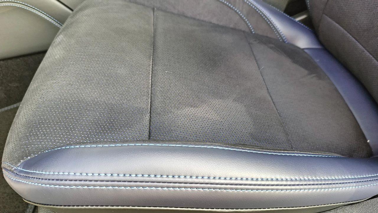 - Tapicerka foteli Miko Suede / Vinyl z elementami winylowymi w kolorze Deep Indigo Blue