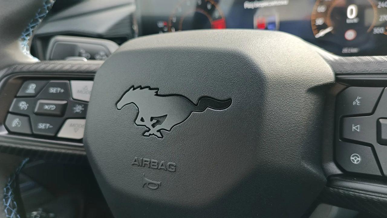 * Lusterka boczne - sterowane, podgrzewane i składane elektrycznie, ze zintegrowanymi kierunkowskazami i lampkami oświetlającymi podłoże z projekcją logo 'Mustang'