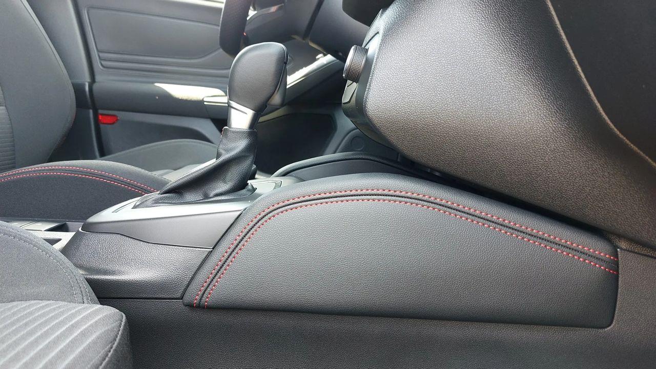 - Fotele - z tapicerką materiałową Foundry w ciemnej tonacji, z czerwonymi przeszyciami