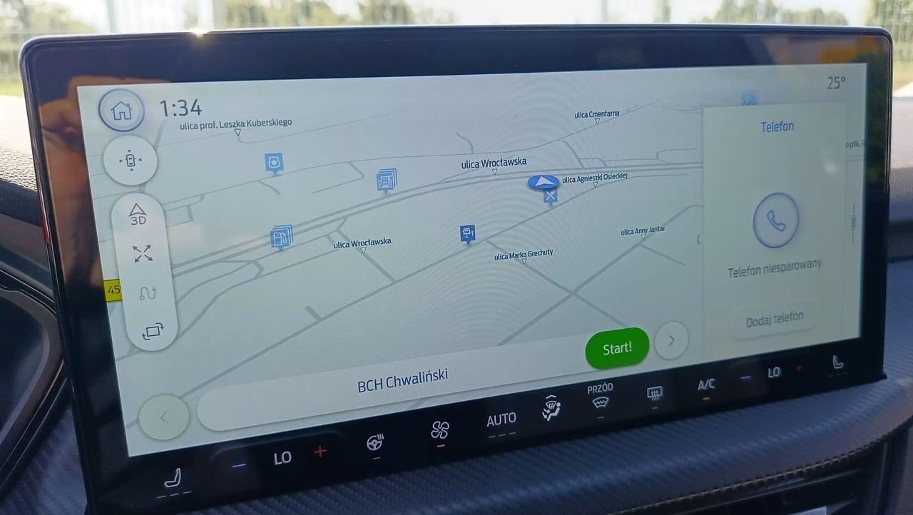 System audio z SYNC4 , DAB+ i nawigacją satelitarną – kolorowy wyświetlacz dotykowy 13.2", bezprzewodowa obsługa Apple CarPlay i Android Auto (wymaga kompatybilnego telefonu), zestaw głośnomówiący z Bluetooth®, obsługa głosowa w języku polskim, 6 głośników, gniazdo USB, zdalne sterowanie na kierownicy