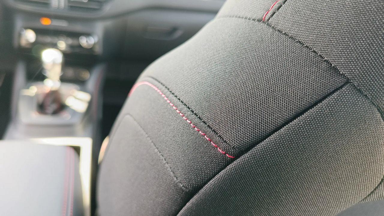 Przednie fotele – tapicerka materiałowa Nova/Eton/Mira z przeszyciami w kolorze Generic Red