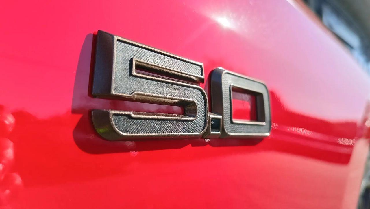 Emblematy w kolorze chromu - "GT" na pokrywie bagażnika oraz "5.0" na błotnikach przednich