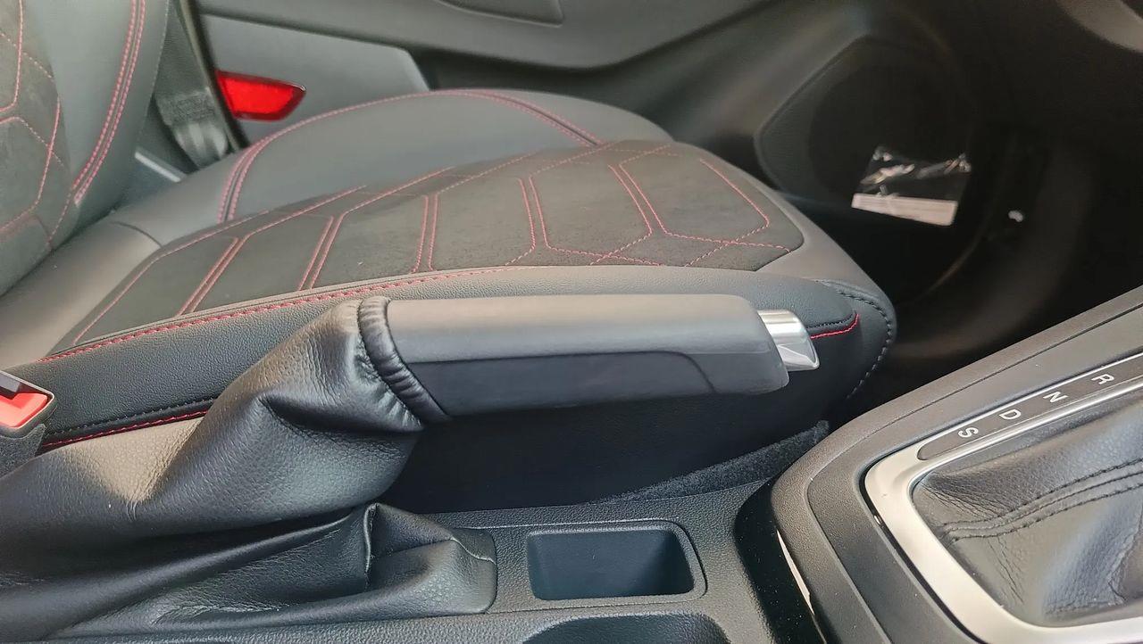 Uchwyt manualnej dźwigni zmiany biegów – wykończony skórą ekologiczną Sensico, w stylizacji ST-Line, z czerwonymi przeszyciami